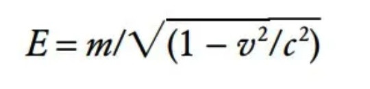 Burada E, bir parçacığın kütle enerjisi, m kütlesi, v hızı ve c ışık hızıdır.