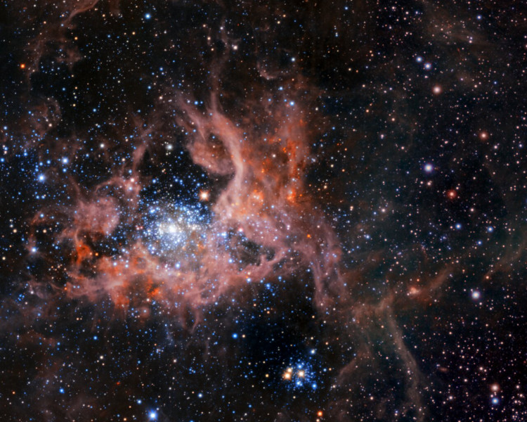 Samanyolumuzun uydu gökadası olan Büyük Macellan Bulutu'nda yer alan Tarantula Bulutsusu, Dünya'dan yaklaşık 170 000 ışıkyılı uzaklıkta yer alan galaktik çevremizdeki en parlak ve en aktif yıldız oluşum bölgelerinden biridir. Kalbinde bilinen en büyük kütleli yıldızlardan bazıları vardır, bunlardan bazıları Güneşimizin 150 katından daha fazla kütleye sahiptir ve bu da bölgeyi gaz bulutlarının yerçekimi altında nasıl çökerek yeni yıldızlar oluşturduğunu incelemek için mükemmel kılar.