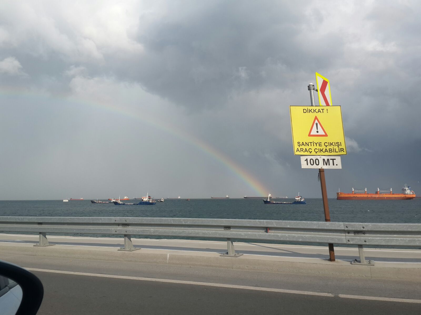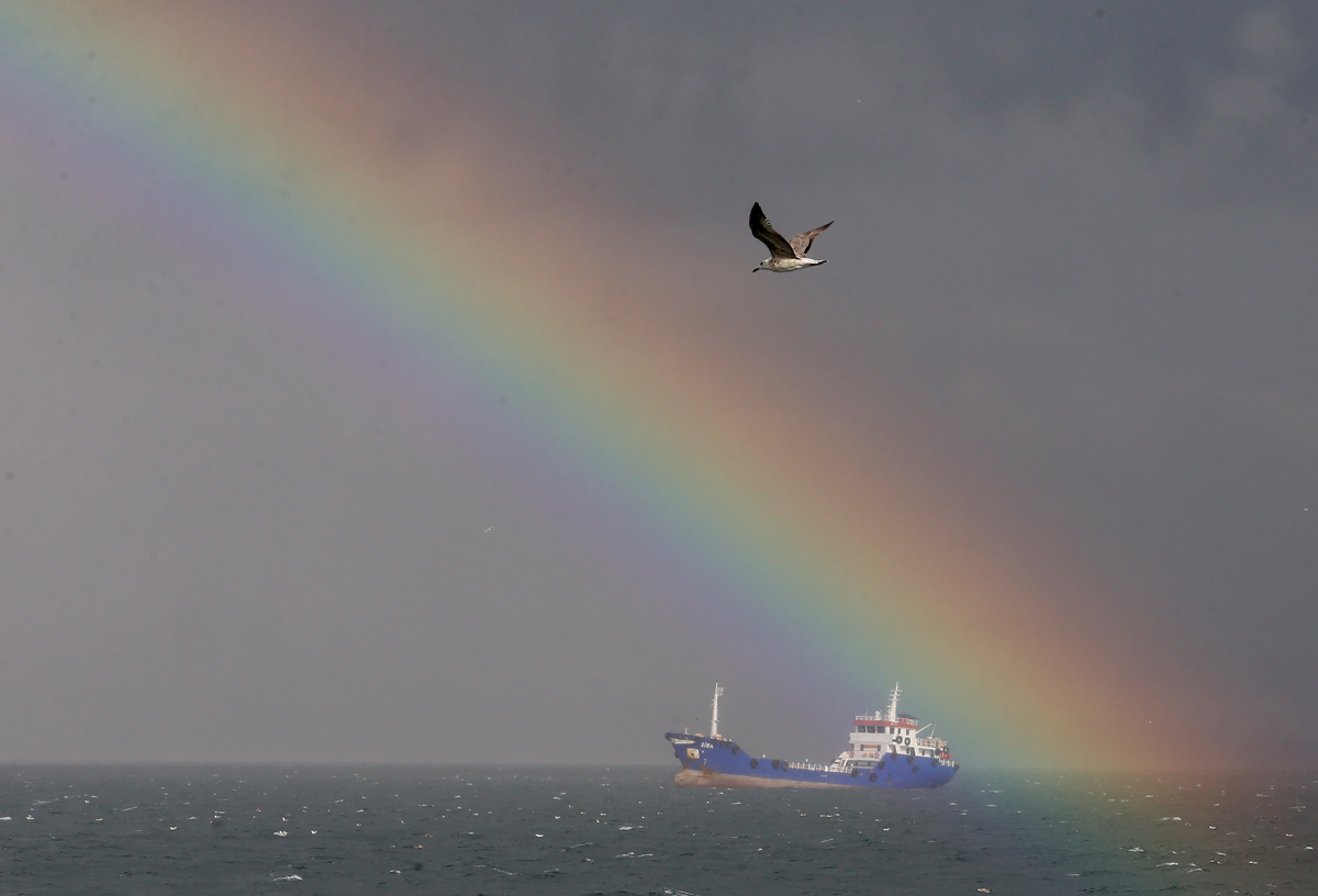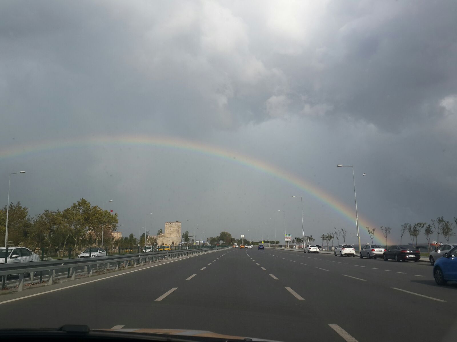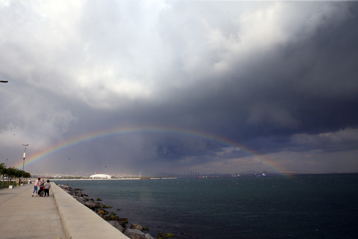 İstanbul'un bir yakasında yağmur, diğer yakasında ise güneşli hava hakim olunca ortaya çıkan gökkuşağı güzel görüntüler oluşturdu.