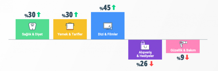 Sağlık, Diyet, Yemek ve Filmler konularındaki paylaşımları arttı