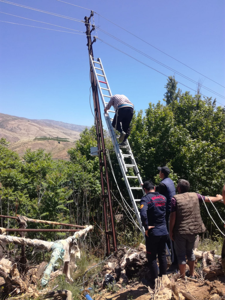 Malatya'nın Doğanyol ilçesi Çolak Mahallesi Küçük mevkisinde bir elektrik direğine henüz bilinmeyen nedenle çıkan Ümit H, direğin eğilmesi nedeniyle aşağı inemedi.