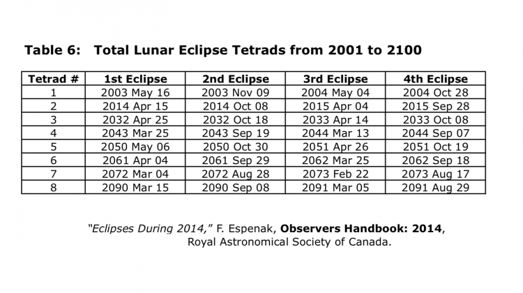 2001- 2100 YILLARI ARASINDAKİ TAM AY TUTULMASI TETRADLARI