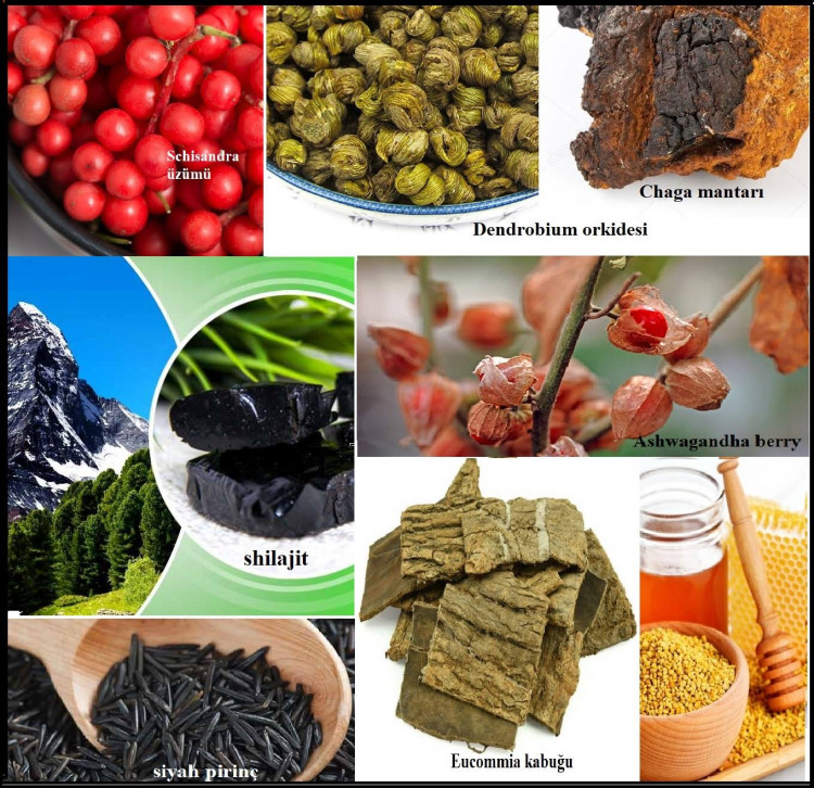 1- Sıradışı olabilen, nadir sayılan ve hepsi dozunda kullanılması gereken; siyah pirinç, yasemin çayı, beyaz çay, firavun buğdayı, ginkgo biloba, Çin'e özgü eucommia ağacı kabuğu, ana vatanı Rusya olan ve huş ağaçlarında yetişen chaga mantarı, nörodejenerasyonun önlenmesinde, dendrobium orkidesi, schisandra üzümü çayı, ginseng, ayurveda sisteminde "bitkilerin kralı" olarak adlandırılan, enerji verici, bağışıklık düzenleyici özellikleri ile tanıtılan ashwaganda (hint ginsengi), shilajit (mineral zift-Hindistan ve Tibet'te bulunan katran benzeri bir madde) ve Elazığ Baskil'de, meşelik alanlarda doğal yetişen kara trüf mantarı da bunlara dahildir.