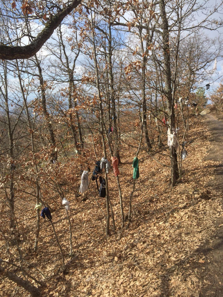 Yaklaşık yarım saatlik yolculuktan sonra geniş ormanlık alanın kenarında durduk. Etrafıma baktığımda oldukça ilginç manzarayla karşılaştım! Ormandaki birçok ağaç kıyafetlerle doluydu… Ağaçların dallarına asılmış ve gövdelerine sarılmış kıyafetler 7’den 77’ye her yaştan her cinsten insana aitti.