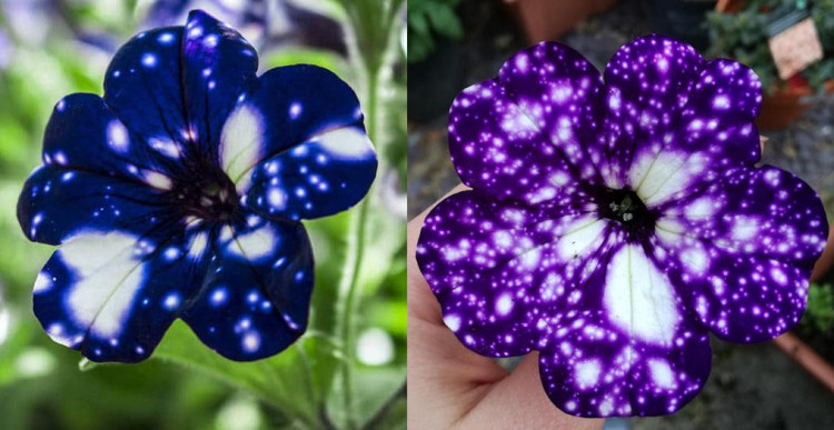 Taç yapraklarında adeta Kozmosu yansıtan ve Latince adı Petunia Cultivars olan Galaksi Çiçekleri'ne, Gece Göğü Petunyaları da deniliyor. Bu çiçekler, yağmur yağdığında saydama dönüşen, benzersiz yaprakları ile, şaşırtıcı göksel manzaralar sunarken, beyaz noktalarla bezenmiş koyu mavi ve mor çiçekleri, galaksilerle çarpıcı bir uyum sergiliyor. Uzak takımyıldızlar, çiçekler üzerinden taşarak hayranlık uyandırıyor.