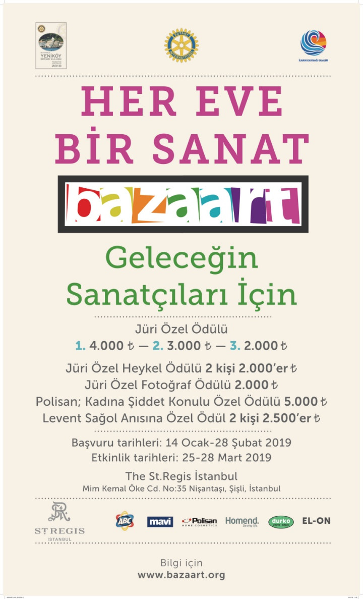 Bazaart Projesi, "Her Eve Bir Sanat" ana fikrinden yola çıkarak Yeniköy Rotary Kulübü desteği ile 25-28 Mart tarihleri arasında The St. Regis Hotel’de tüm sanatseverlere açık olarak bu sene de sanat öğrencilerini, sanatseverler ve koleksiyonerler ile bir araya getirerek eserlerini sergilemeye devam ediyor.