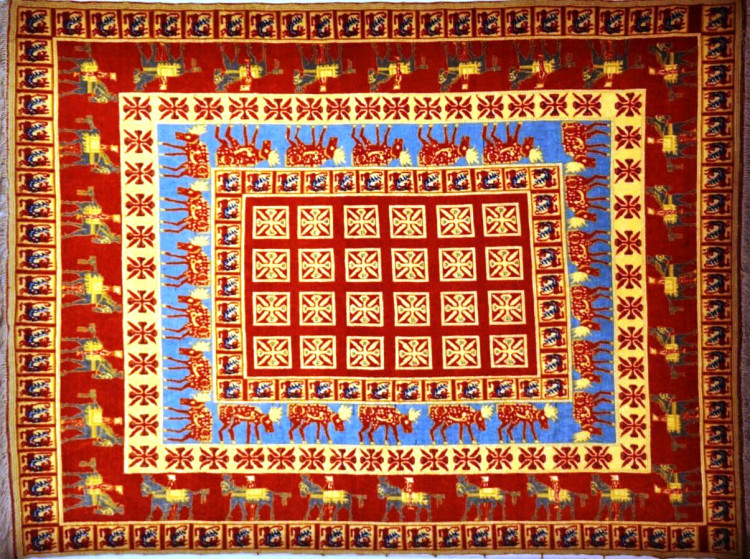 Türkiye’de, Niğde’de dokunan Pazırık Halısı modeli. (Niğde Valiliği Halıcılık Birliği projesi)