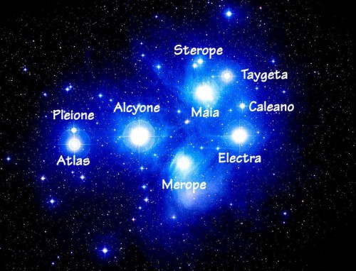 Astronomideki isimleri Pleiades'tir o takım yıldızlarının. Biz daha çok Ülker ya da Süreyya deriz onlara. Ama dünya üzerinde daha pek çok isimle seslenilmektedir onlara: Bahar Bakireleri, Yedi Kızkardeşler, Güvercin Sürüsü, Krittika, Kimah, Tavuklar, Denizcinin Yıldızları ve hatta Atlantisli Kızkardeşler de denilir onlara....