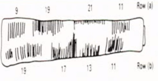 Dünya tarihinin ilk sayı yazma örneği Afrika Uganda'da Lembedo Dağı'nda bir baboon kemiği üzerine mağarada bulunmuş kemik m.ö. 35.000 e tarihlenir. Bu kemiğe benzer şekilde bulunan Ishango Kemiği adı verilen aşağıdaki kemik ise bir aletin sapı olarak Arkeolog Jean de Heinzelin, tarafından Uganda-Zaire sınırı arasındaki Ishango bölgesinde bulunmuştur. (m.ö. 9000)