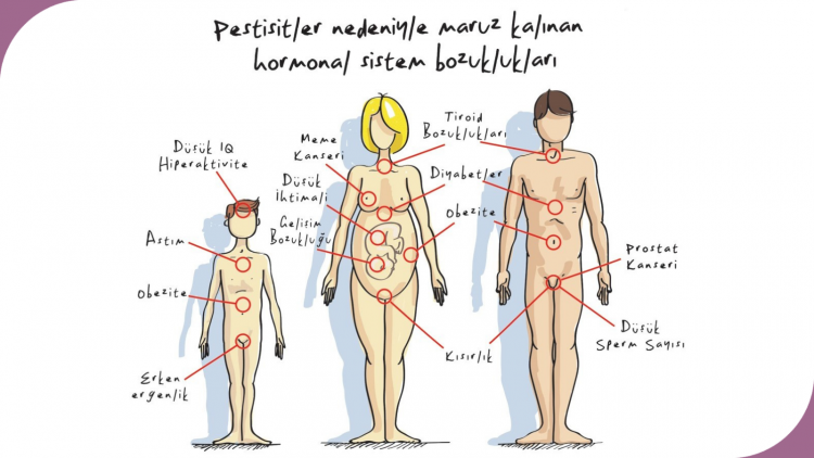 2017 yılında BM İnsan Hakları Konseyi’ne sunulan Gıda Hakkı Özel Sözcüsü Schutter’in raporu da tarım zehirlerinin bebeklere yönelik risklerine dikkat çekiyor: “Pestisitlere maruz kalan hamile kadınların düşük yapma, erken doğum ve doğuştan gelen bozukluklarla karşılaşma riski daha yüksek. Yeni doğanların göbek kordonu ve ilk dışkılarında birçok tarım zehirinden oluşan bir karışım bulunuyor. Hamile kadınlardan aktarılan pestisit etkileri, lösemi ve diğer kanser türlerinin yanı sıra, otizm ve solunum hastalıkları riskini de artırıyor.”