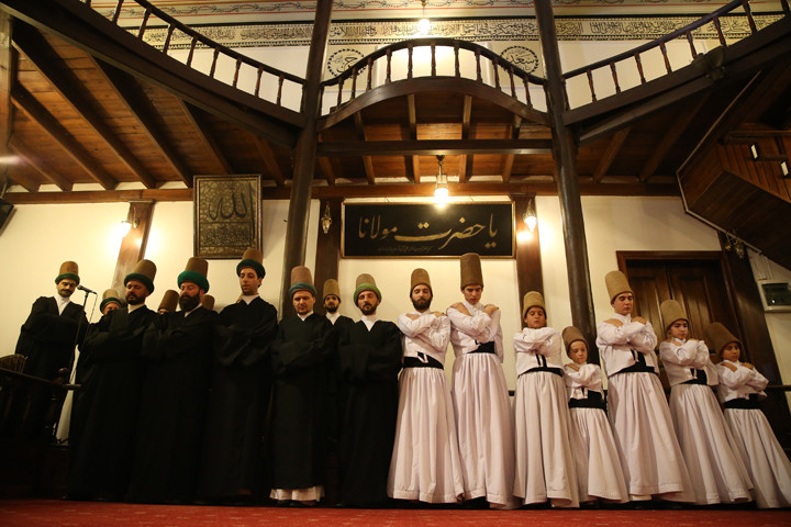 Bursa'da yaklaşık 400 yıllık tarihi olan Karabaş-i Veli Kültür Merkezinde 6 baba ve 7 çocuğu, beraber sema yapmanın mutluluğunu yaşıyor.