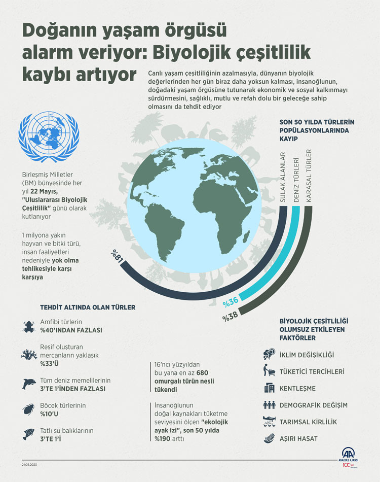 Sürdürülebilir dünya için doğal yaşam çeşitliliğinin korunması ve geliştirilmesini teşvik amacıyla Birleşmiş Milletler (BM) bünyesinde her yıl 22 Mayıs, "Uluslararası Biyolojik Çeşitlilik" günü olarak kutlanıyor.