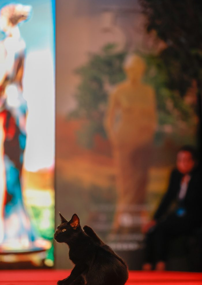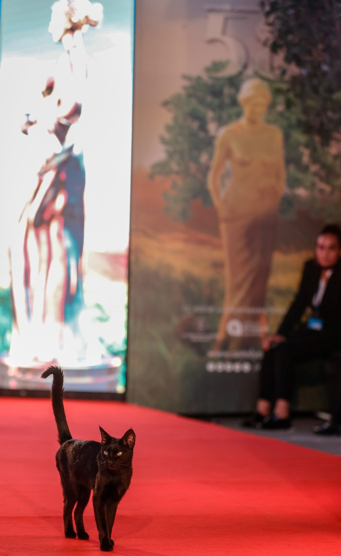 Festival kapsamındaki kırmızı halı geçişi sırasında siyah bir kedi dikkatleri üzerine çekti.