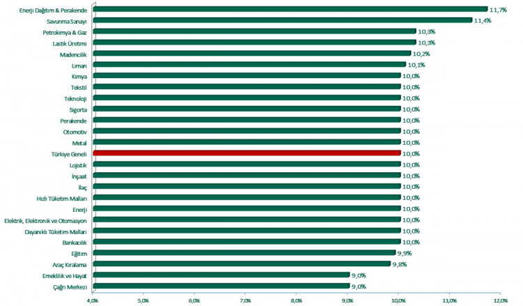 Yüzde 61’i ulusal, yüzde 39’u ise uluslararası şirketlerden oluşan 1.578 şirketin katılımıyla gerçekleştirilen araştırma, önümüzdeki yıl en çok hangi sektörlerin maaş artışına gideceği, hangi sektörlerin ise maaş artışında biraz daha geride kalacağını da net bir şekilde ortaya koydu. Buna göre son yıllarda yatırımların arttığı enerji dağıtım ve perakende yüzde 11,7 ile en yüksek zam oranını yakalaşacak sektör olurken, savunma sanayi, petrokimya ve gaz, lastik üretimi, madencilik ve liman Türkiye ortalamasının üzerinde zam yapmayı planlayan sektörler oldu. Emeklilik-hayat sigortası ve çağrı merkezi sektörleri ise yüzde 9 oranındaki artışla Türkiye ortalamasının altında kaldı. |