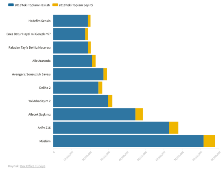 En çok izlenen 10 filmin 9'unu yerli filmler oluştururken, en çok gişe yapan ise dram türünde olan ve Müslüm Gürses'in gerçek yaşam hikayesini sinemaya uyarlayan "Müslüm" filmi oldu.