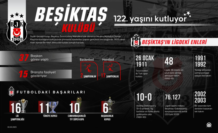 Beşiktaş Kulübü Başkanı Serdal Adalı, kulübün kuruluşunun 122. yılı dolayısıyla mesaj yayımladı.