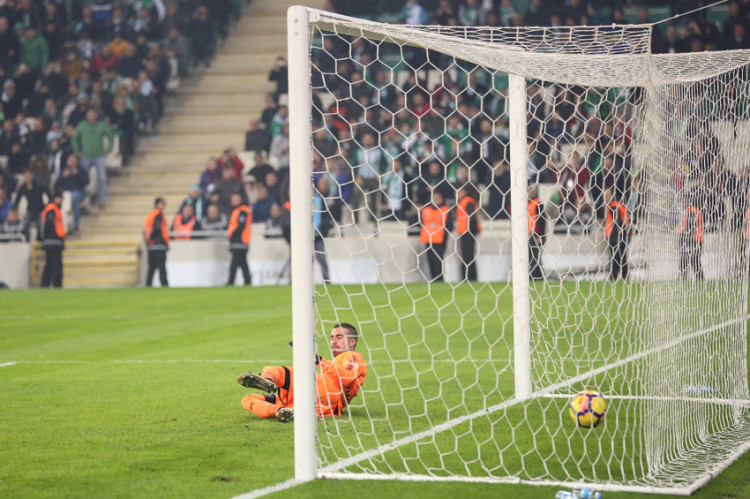 16. dakikada gelişen konuk takım atağında, Bursaspor savunma oyuncularının uzaklaştırmak istediği top, ceza sahası önünde bekleyen Şener Özbayraklı'nın önüne düştü. Bu oyuncunun vuruşunda, kaleci Harun Tekin topa tek hamlede sahip oldu.
