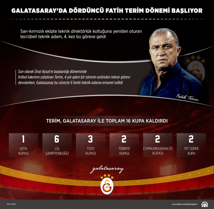 Sarı-kırmızılı ekipte üçüncü dönemindeki son maçında, 22 Eylül 2013'te Süper Lig'de Beşiktaş'ı deplasmanda 3-0 hükmen yendikleri müsabakada görev yapan Terim, bin 554 gün aradan sonra Galatasaray'ın başında sahada yer alacak.