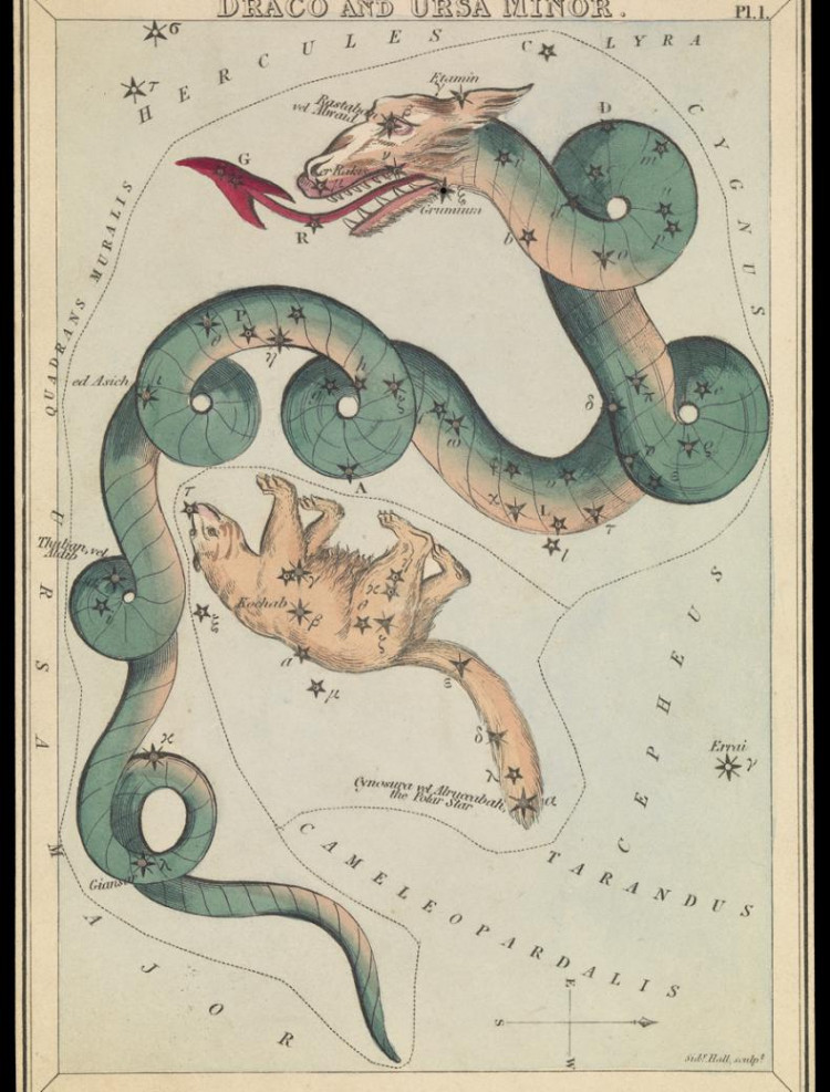 Ejderha göktaşı yağmurlarının ana nesnesi olan ve Draconids'leri gönderen takımyıldız Draco, Dragon'un Latincesi olarak belirlenen adı taşır. Draconid meteor yağmurunun parlak noktası, Ejderin gözlerini oluşturan Rastaban ve Eltanin yıldızlarıdır.