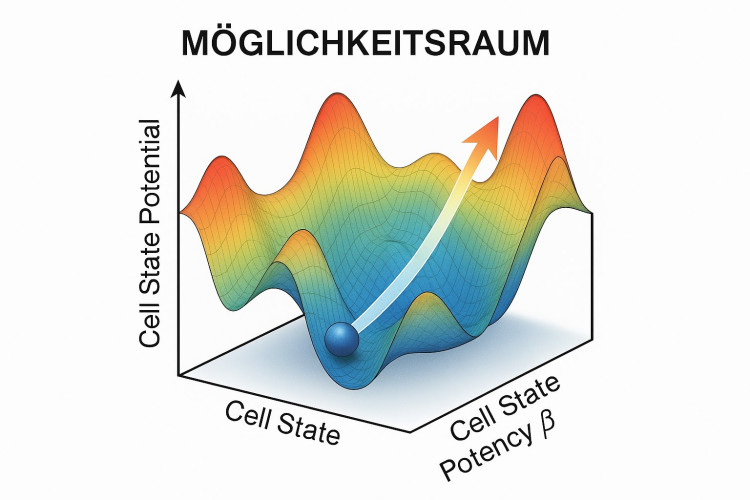 “Möglichkeitsraum” Almanca’da “olasılıklar alanı” anlamına gelir. Bu modelde, bir hücrenin içinde bulunduğu potansiyel (β) düzeyine göre erişebileceği hücresel durumların tümü bu uzayda tanımlanır. Ancak bu sadece biyolojik bir alan değil—aynı zamanda sembolik bir anlatı zemini. Gençlik: Zirvelere Açılan Kapı 2. Yaşlanma: Vadilere Sıkışmak 3. Tavlama Anı: Hafızanın Isıtılması |
