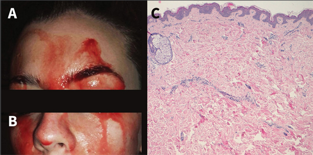 Testler, yüzünde gerçekten kan olduğunu gösterdi; belirli koşullarda ortaya çıkabilen "renkli ter" değil. Raporda, cildi mikroskopta incelendiğinde normal cilt dokusu gösterdi.