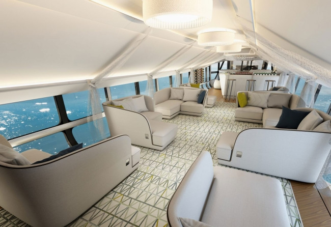 Bir havacılık ve otomobil firmasının tasarladığı hava gemisi, lüks yatak odaları ve salondan oluşuyor. Ayrıca tavandan tabana kadar pencerelere sahip. Bu sayede yolcular 16 bin feet yükseklikte manzaranın tadını çıkarabilecek.