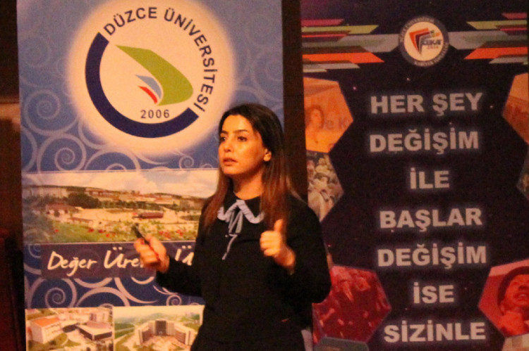 Düzce Üniversitesi öğrencilerinin yoğun katılımıyla gerçekleşen etkinlikte konuşan E-Güven İş Geliştirme, Satış ve Pazarlama Direktörü Ayşegül Topoğlu Tüzün, Y kuşağının alışkanlıkları ve dijital pazarlama alanındaki yeni eğilimler hakkında bilgi verdi.