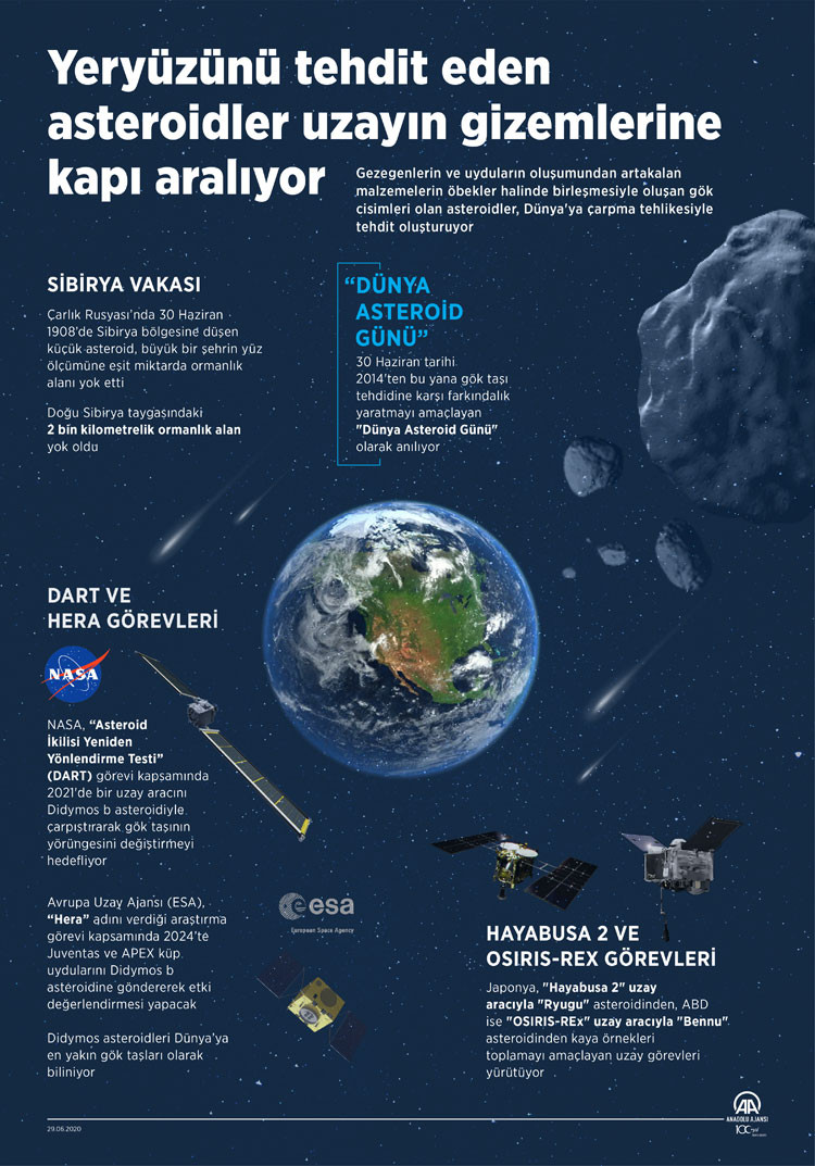 Çarpma tehlikesi nedeniyle yeryüzüne tehdit oluşturan asteroidler, bilim insanlarına Dünya'nın ve Güneş Sistemi'nin oluşumu ve yapısına ilişkin sağladıkları bilgilerle, insanlığa uzayın gizemlerine dair yeni ufuklar açma potansiyeli taşıyor.