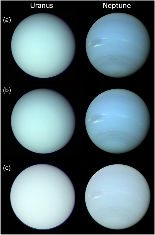 Gökbilimsel Araştırmada Üniversiteler Birliğinde çalışan Heidi Hammel, “Neptün’ün renginin yanlış algılanmasının yanısıra Uranüs’ün olağandışı renk değişimleri, onlarca yıldır bizi çileden çıkardı” diyor bir açıklamada. “Bu kapsamlı çalışma, nihayet her iki meseleyi de çözüme kavuşturuyor.” Hammel yeni çalışmanın yazarları arasında yer almıyor.