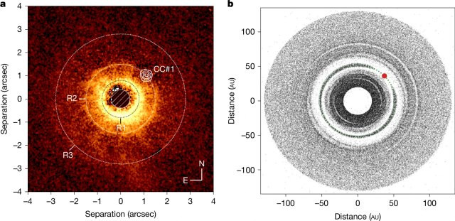 Fransa'daki Observatoire de Paris-PSL ve Université Grenoble Alpes'te CNRS araştırmacısı olan Dr. Anne-Marie Lagrange liderliğindeki uluslararası ekip, JWST'nin Orta Kızılötesi Enstrümanı (MIRI) ve koronagrafını kullanarak TWA 7'yi çevreleyen enkaz diskinde zayıf bir kızılötesi kaynak tespit etti. Kaynak, gökyüzündeki yıldızdan yaklaşık 1,5 yay saniyesi uzaklıkta yer alıyor ve TWA7'nin uzaklığı, Dünya'nın Güneş'e olan uzaklığının yaklaşık elli katı. Bu, enkaz diskinde görülen temel özellikleri açıklayacak bir gezegenin beklenen konumuyla uyuşuyor.
