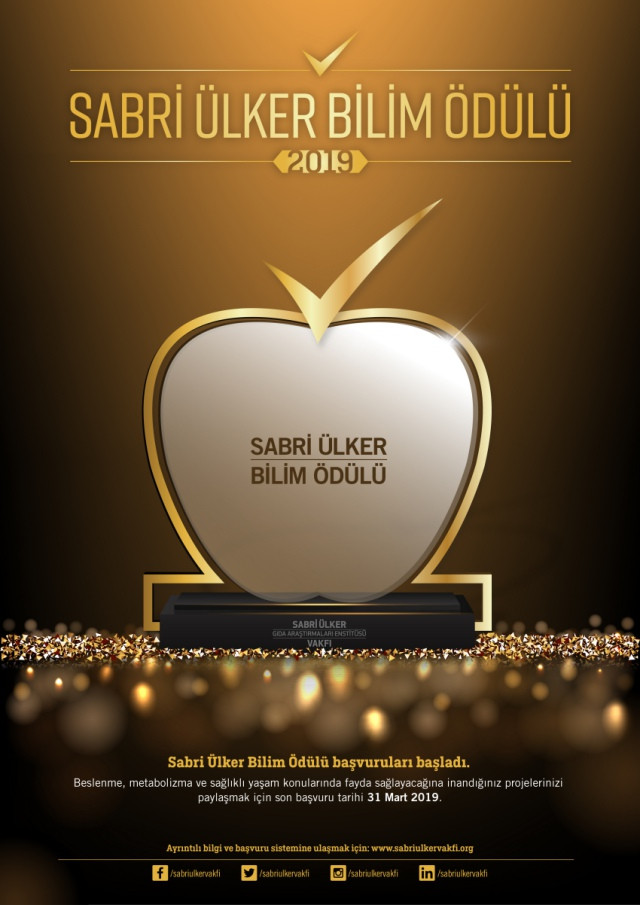 Teması “Beslenme, Metabolizma ve Toplum Sağlığı” olarak belirlenen “Sabri Ülker Bilim Ödülü” yarışması için başvurular kabul edilmeye başlandı. Uluslararası başvuruya açık olan ve katılım üst yaş sınırının 45 olarak belirlendiği “Sabri Ülker Bilim Ödülü” yarışmasına, tamamlanmış orijinal projelerle sadece İngilizce başvuru yapılabiliyor. Kazanan bilimsel projenin 100 bin TL ile ödüllendirileceği yarışmanın jürisinde bu yıl, uluslararası bilim insanlarının yanı sıra geçtiğimiz yıllarda Bilim Ödülü kazanan isimler de yer alıyor. 31 Mart 2019 tarihine kadar başvuruların kabul edileceği Sabri Ülker Bilim Ödülü’nün kazanını 2 Mayıs tarihinde açıklanacak.