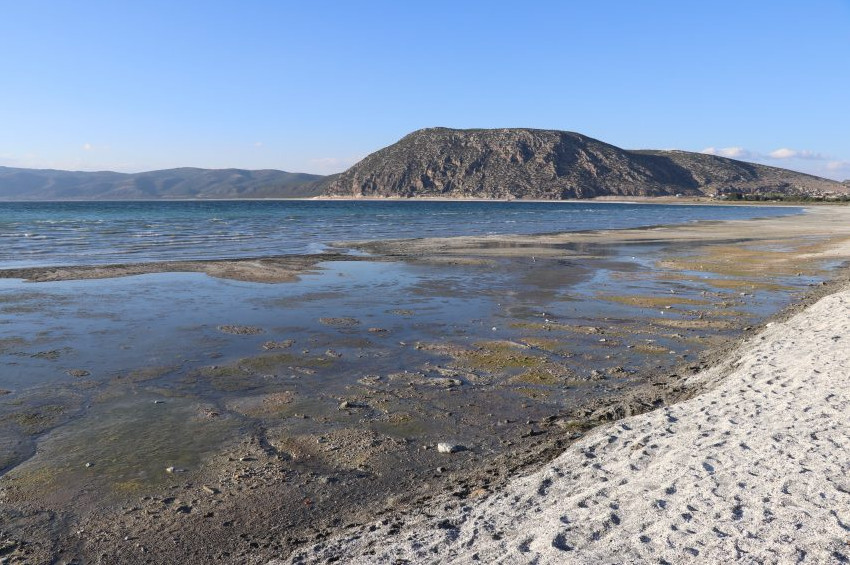 Burdur'un Yeşilova ilçesinde Salda Gölü'nün kıyısındaki yer yer oluşan sarımtırak görüntü merak konusu oldu.