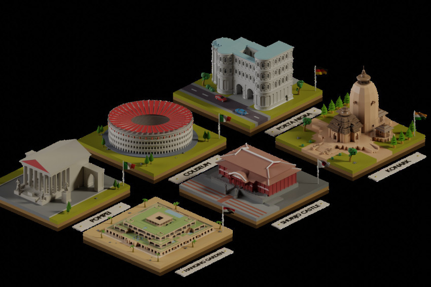 Colosseum, Babil'in Asma Bahçeleri, Konark Güneş Tapınağı, Pompeii, Porta Nigra ve Shuri Kalesi Living Heritage öğrenci projesi sayesinde geçmişte var olduğu gibi yeniden canlandırıldı.