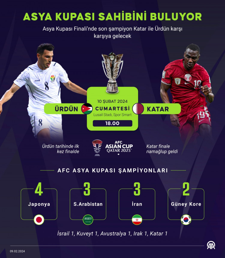 Asya Futbol Konfederasyonu tarafından bu yıl 18'incisi gerçekleştirilen organizasyonun final maçında ev sahibi Katar, Ürdün ile Lusail Stadı'nda saat 18.00'de karşılaşacak. Müsabaka, Spor Smart'tan canlı yayımlanacak.