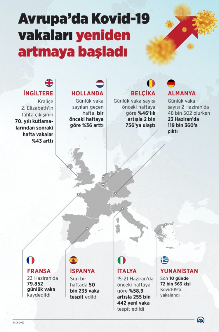 İngiltere'de 2-5 Haziran'da Kraliçe 2. Elizabeth'in tahta çıkışının 70. yılında düzenlenen kutlamalara çok sayıda vatandaşın katılmasıyla ülke genelinde vakalarda ani artış görüldü.