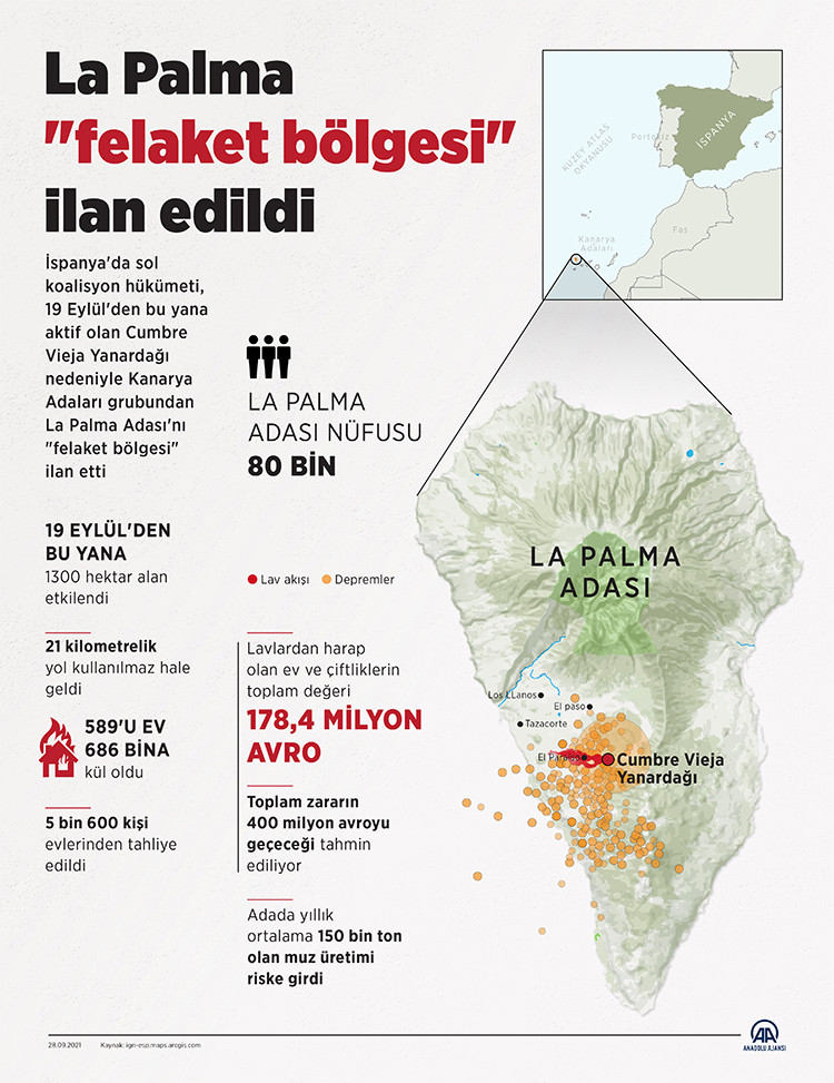 Kanarya Adaları özerk yönetim hükümeti de La Palma'ya 13 milyon avroluk yardım planı kararı almıştı.