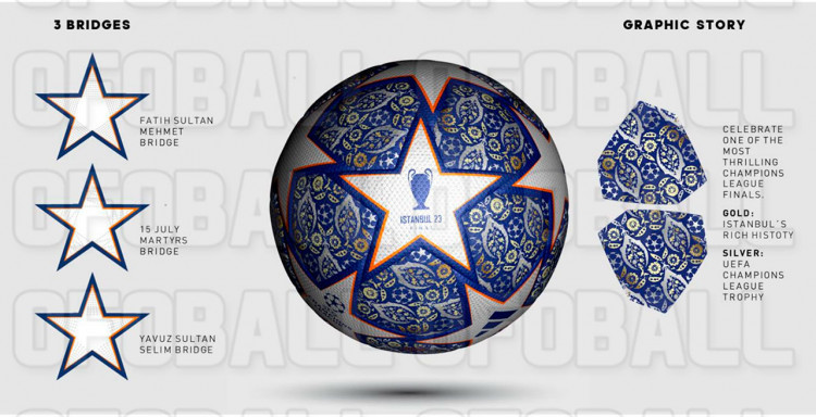 Adidas tarafından İstanbul’da oynanacak Şampiyonlar Ligi Finali için özel olarak tasarlanan topun üzerinde ülkemize ait pek çok motif bulunuyor. Topun üzerinde 3 farklı desene sahip yıldız bulunuyor ve bu yıldızlar Fatih Sultan Mehmet Köprüsü, 15 Temmuz Şehitler Köprüsü ve Yavuz Sultan Selim Köprüsünü temsil ediyor. Ayrıca yıldızların dışında kalan kısımların ülkemize has çini motifleriyle doldurulduğunu görebiliyoruz.