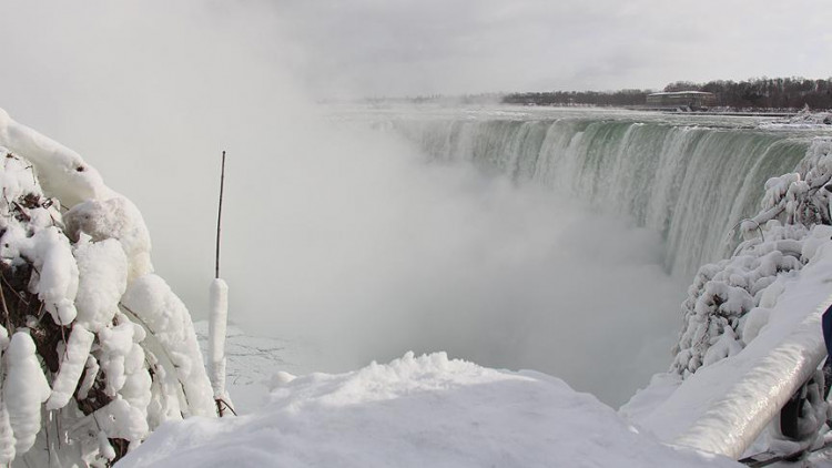 Şelaleye su taşıyan Niagara Nehri'nin yüzeyi buzlarla kaplanırken suyun düştüğü şelale yatağı da buzlardan görünmez hale geldi.