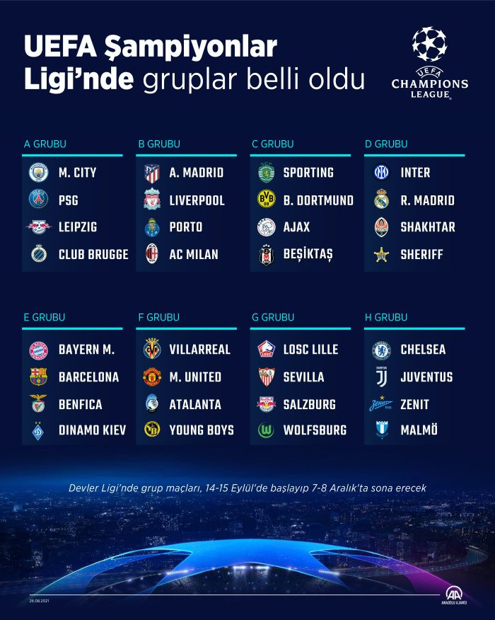 UEFA Şampiyonlar Ligi'nde 2021-2022 sezonu grup kuraları İstanbul Haliç Kongre Merkezi'nde çekildi. Kura çekimine 4. torbadan dahil olan Beşiktaş, C Grubu'nda Sporting Lizbon, Borussia Dortmund ve Ajax ile eşleşti.