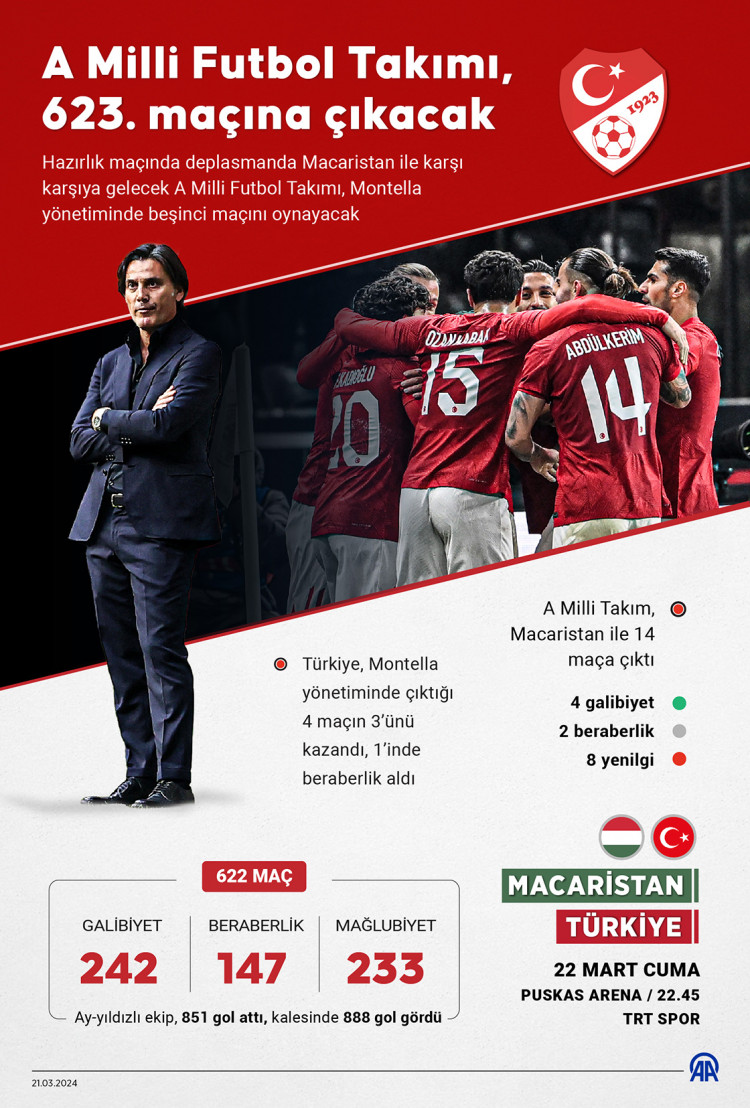 2024 Avrupa Futbol Şampiyonası (EURO 2024) hazırlıklarını sürdüren A Milli Takım, özel maçta yarın Macaristan ile deplasmanda karşı karşıya gelecek.