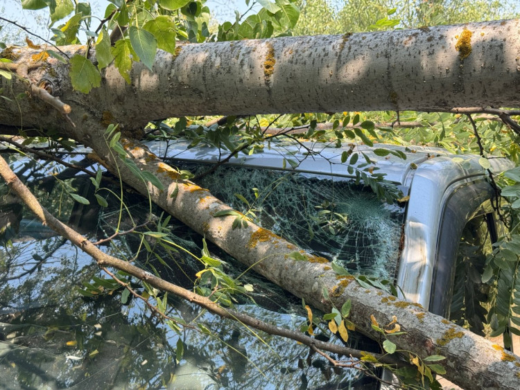 ,Bartın'da kökünden çürüyerek devrilen ağacın altında kalan 4 araçta hasar oluştu.