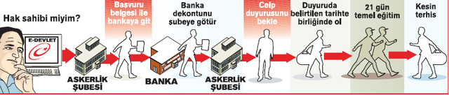 Böylece 3 aylık başvuru süresi de başlamış oldu. Yasaya göre; 1 Ocak 1994 (dahil) tarihinden önce doğanlar, 15 bin lira ödeyip (yurtdışında yaşayan için 2 bin euro), 21 gün temel eğitim alarak askerlik yapmış sayılacak.