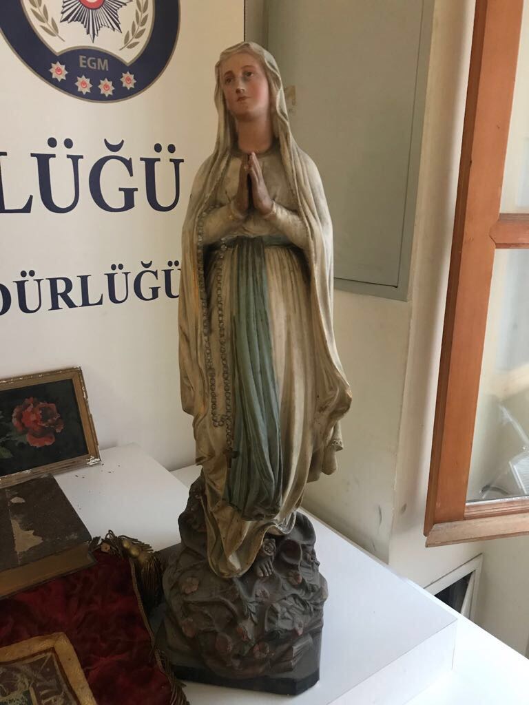 İlçe Emniyet Müdürlüğü Asayiş Büro Amirliği ekipleri, Hacımimi Mahallesi Kemeraltı Caddesi Eski Parmakkapı Sokak'ta atıl halde bulunan Latin Katolik Kilisesi'nden, 1861 yılında yapılan tarihi tablo ile haç, Meryem Ana heykeli, kase ve çok sayıda kitap çalan şüphelilerin yakalanması için çalışma başlattı.
