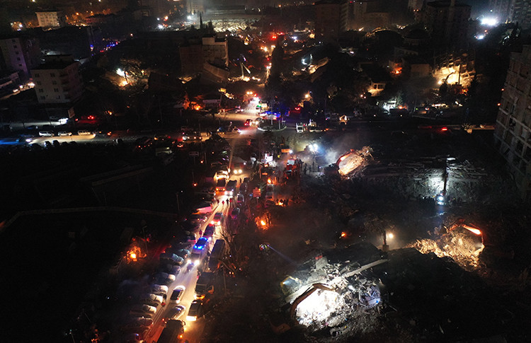 Anadolu Ajansı foto muhabiri Evrim Aydın tarafından çekilen fotoğraf karesinde tek mahallede yürütülen 14 arama kurtarma çalışması yer aldı. Aynı fotoğraf karesinde Onikişubat Stadyumu'na kurulan çadırkent de sığdı.
