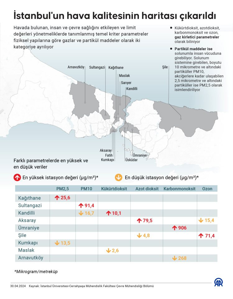 | PM2,5 | KAĞITHANE | 25,6 | KUMKAPI | 13,5 |