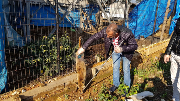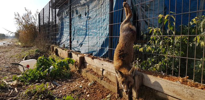Alınan bilgiye göre, kırsal Örnekköy Mahallesi'nde vatandaşlar, bir çiftliğin önündeki tellerde asılı halde bir tilkinin olduğunu fark etti.