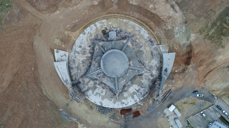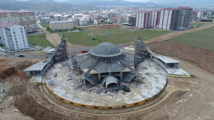 Yıldız şeklindeki kapalı alanında 3 bin 500, hilal şeklindeki avlusunda ise 5 bin kişinin namaz kılabileceği caminin yıl sonunda ibadete açılması hedefleniyor.