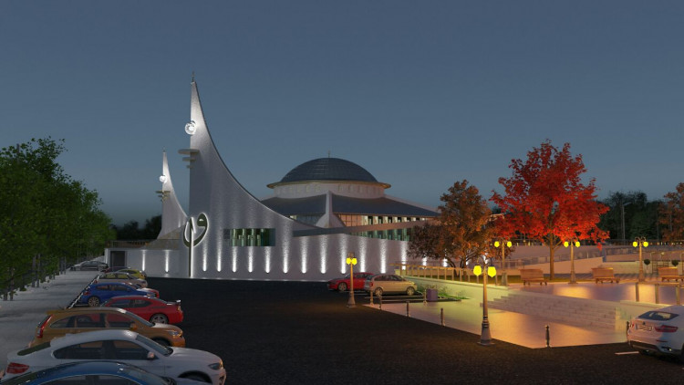 Yukarı Tekke Mezarlığı yakınlarındaki belediye ve hayırsever vatandaşların yapımını üstlendiği 7 bin metrekare kapalı alan üzerine kurulu "ay-yıldız" şeklindeki caminin inşasına geçen yıl eylül ayında başlanmıştı.