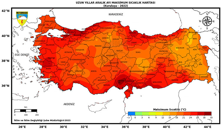 Sıcaklık analizlerinde, 1971'den itibaren yapılan karşılaştırmaya göre, 2023 Aralık ayı son 53 yılın en sıcak aralık ayı olarak kayıtlara geçti.