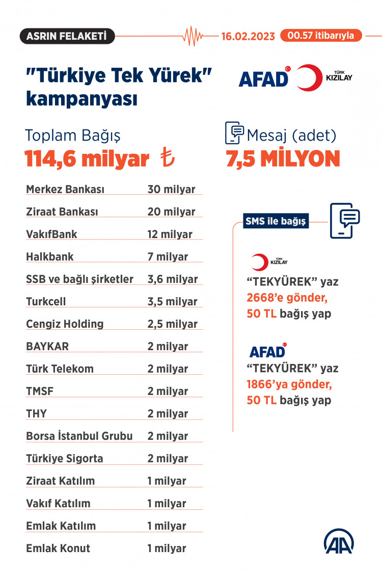 Kampanyanın ikinci saat diliminde THY ve Baykar 2'şer milyar lira, Ziraat Katılım 1 milyar lira bağışladı.